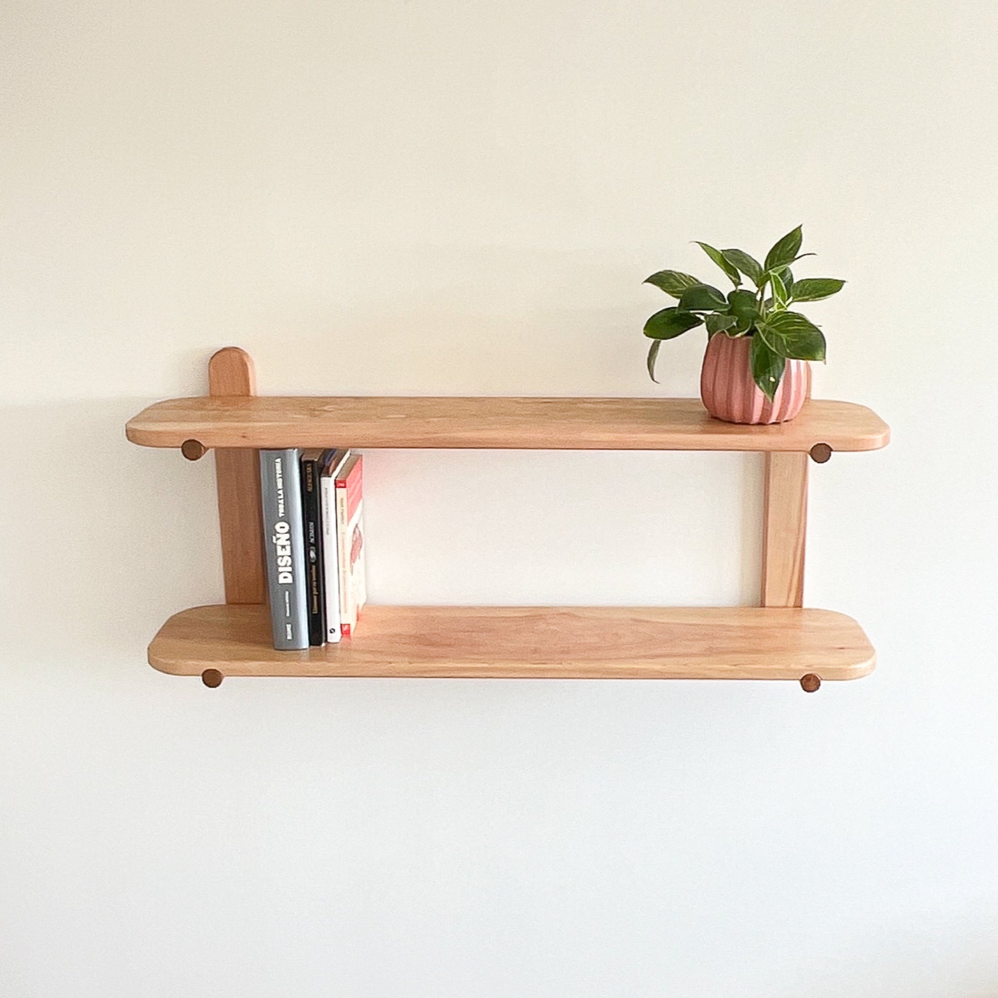 Cada repisa mide 90 cm de ancho y 20 cm de profundidad, el espacio entre repisas en de 26 cm.
